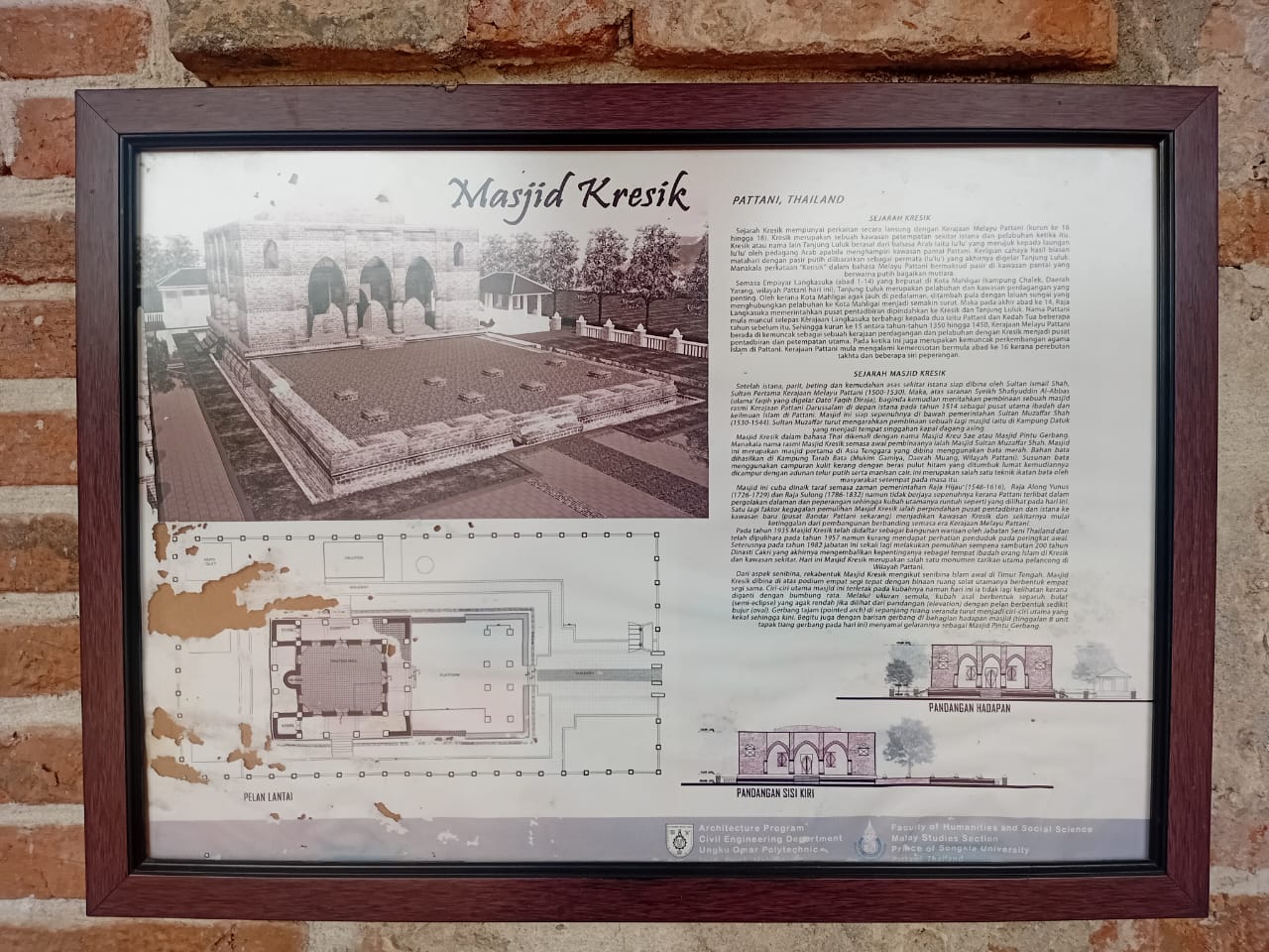 Selain pertemuan dengan Baba Ismail, tim melanjutkan perjalanan spiritual dengan berziarah ke makam para raja Kerajaan Islam Pattani Darussalam serta makam Tok Pasai, salah satu tokoh sentral dalam sejarah Islam Pattani. Tim juga mengunjungi Masjid Kresik, sebuah situs bersejarah yang telah menjadi saksi bisu perjalanan panjang Islam di kawasan tersebut. Masjid ini tidak hanya menjadi tempat ibadah, tetapi juga simbol penting budaya dan keagamaan masyarakat Pattani selama ratusan tahun.