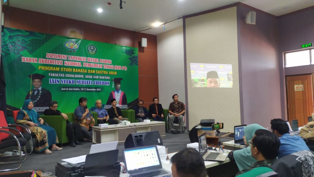 Cirebon (11/12). Badan Akreditasi Nasional Perguruan Tinggi (BAN-PT) menggelar Assesment Lapangan (AL) pada Jurusan Bahasa dan Sastra Arab (BSA) IAIN Syekh Nurjati Cirebon. Kegiatan AL online yang berlangsung selama dua hari (10-11/12) tersebut mengadirkan dua asesor BAN-PT, antara lain; Prof. Dr. H. Ali Mudhofir, M,Ag (Guru Besar UIN Sunan Ampel Surabaya) dan Prof. Dr. Husnan Lubis, MA., Ph.D (Guru Besar Universitas Sumatera Utara).