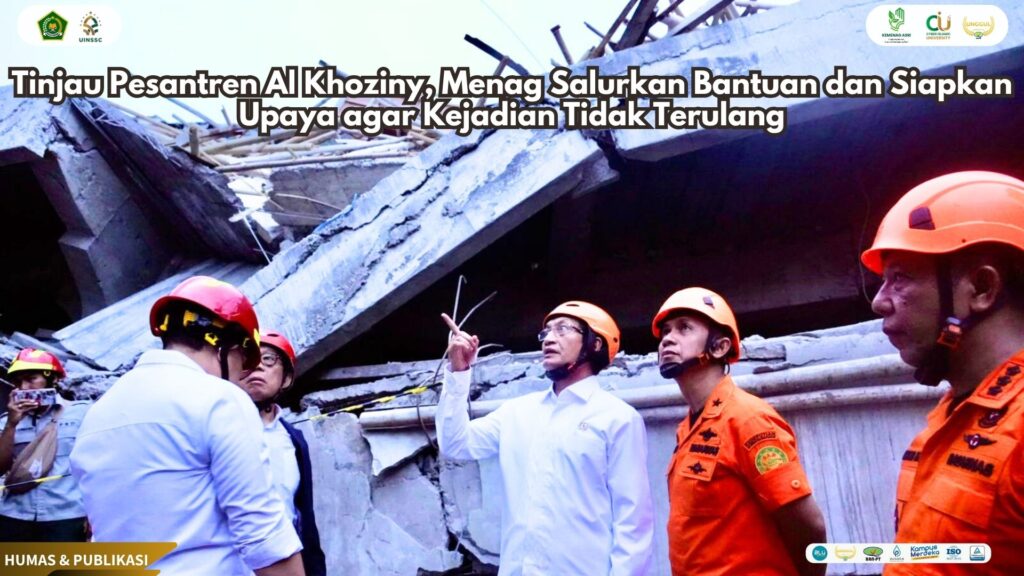 UIN Siber Cirebon (Sidoarjo, Kemenag) — Menteri Agama Nasaruddin Umar hari ini meninjau penanganan korban terdampak bangunan ambruk di Pesantren Al Khoziny, Sidoarjo. Menag menyampaikan duka atas peristiwa yang terjadi, serta menyalurkan bantuan sebesar Rp610 juta, dan menyiapkan upaya agar kejadian serupa tidak terulang di masa mendatang.