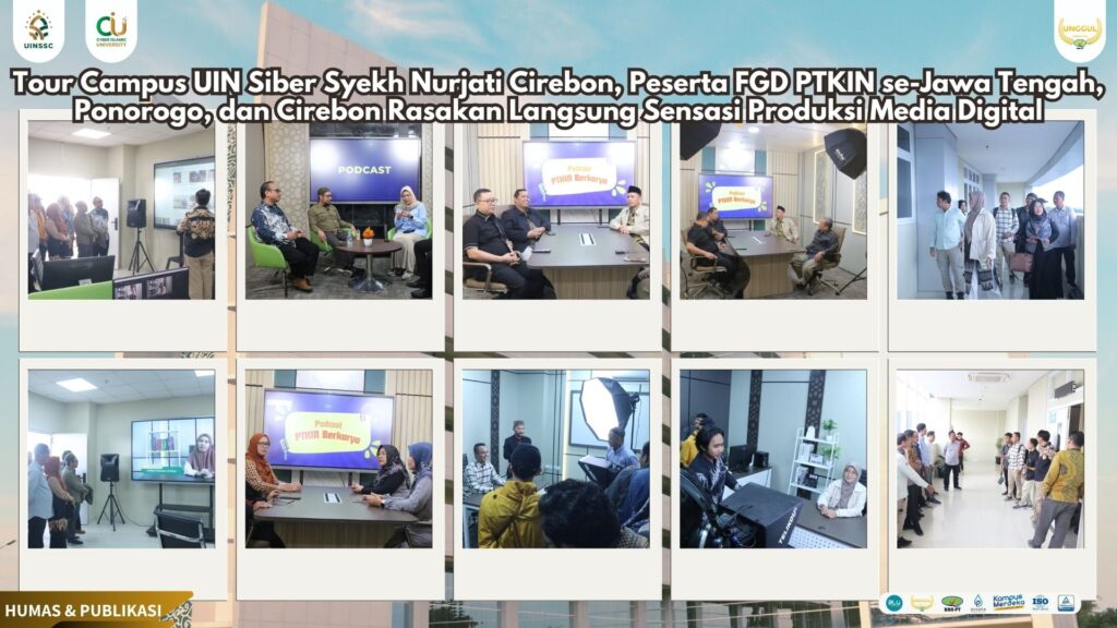 UIN Siber Cirebon — Universitas Islam Negeri (UIN) Siber Syekh Nurjati Cirebon atau yang dikenal sebagai Cyber Islamic University (CIU) kembali mencuri perhatian melalui kegiatan Tour Campus yang menjadi rangkaian Focus Group Discussion (FGD) Pimpinan PTKIN se-Jawa Tengah, Ponorogo, dan Cirebon. Kegiatan yang berlangsung pada Sabtu, 5 Juli 2025 ini sukses menjadi momen inspiratif bagi para pimpinan Perguruan Tinggi Keagamaan Islam Negeri dalam membangun ekosistem media digital yang kreatif dan kolaboratif.