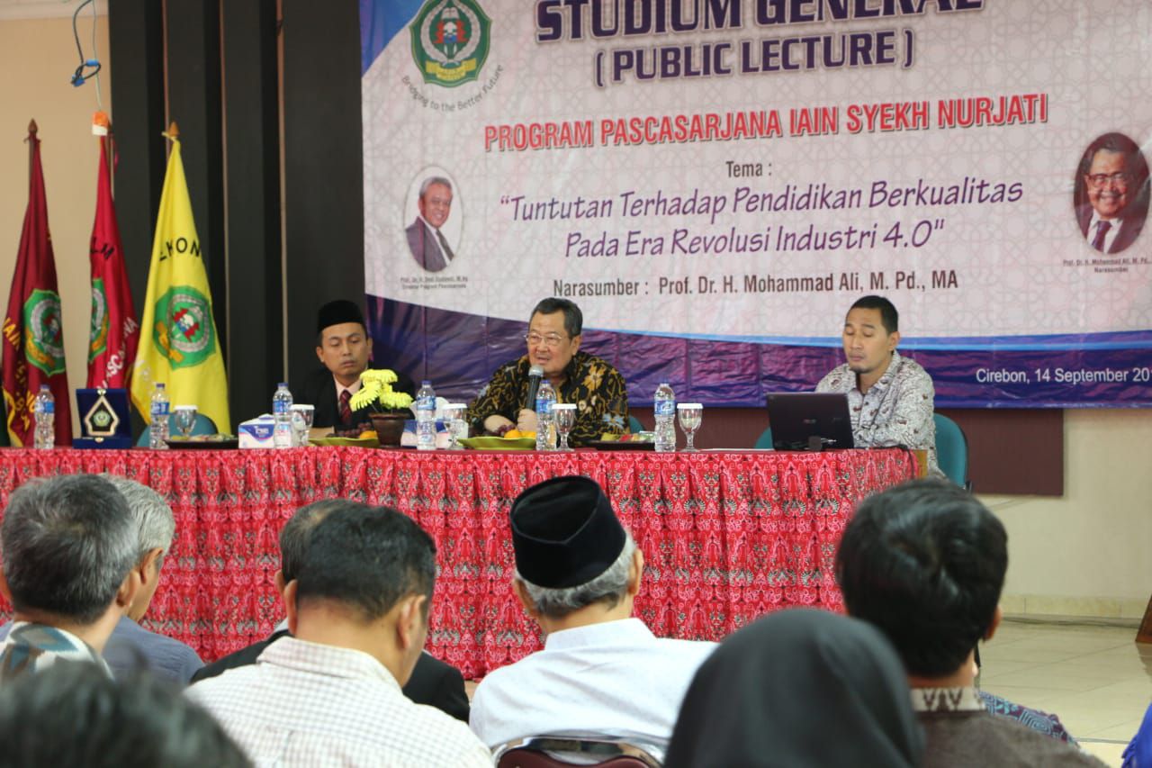 Program Pascasarjana Institut Agama Islam Negeri (IAIN) Syekh Nurjati Cirebon menggelar Studium General dengan tema “Tuntutan Terhadap Pendidikan Berkualitas Pada Era Revolusi Insustri 4.0” dengan narasumber Prof. Dr. H. Muhamad, Ali, M.A. (Dirjen Pendidikan Islam pada Kementerian Agama RI) dan sebagai moderator Abdul Mubarok, S.I.P., M.Si. Sabtu (14/09)