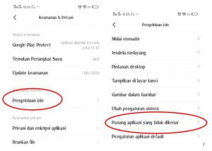 - Masuk pada menu “Pengaturan”, kemudian pilih menu “Keamanan & Privasi”. Setelah itu pilih menu “Pengelolaan izin”, kemudian pilih “Pasang aplikasi yang tidak dikenal”.