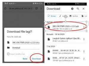 - Buka aplikasi browser yang telah kita seting perizinan keamanannya, kemudian ketikan alamat um-ptkin.ac.id/home/aplikasi untuk mendownload aplikasi SSE UM PTKIN.apk.