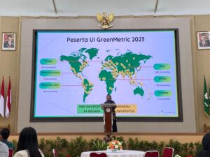 Sambutan berikutnya disampaikan oleh Kepala UI Green Metric, Prof. Dr. Ir. Riri Fitri Sari, MM., M.Sc., yang menyoroti peran kampus dalam gerakan global menuju kampus hijau. Prof. Riri menyampaikan bahwa setiap institusi pendidikan tinggi memiliki tanggung jawab moral untuk mendukung pembangunan berkelanjutan dan menjadi contoh bagi masyarakat dalam pengelolaan limbah yang ramah lingkungan.