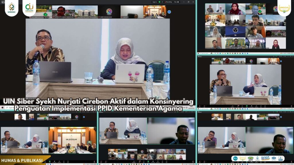 UIN Siber Cirebon – Universitas Islam Negeri (UIN) Siber Syekh Nurjati Cirebon menunjukkan komitmennya dalam penguatan implementasi pelayanan publik berbasis keterbukaan informasi. Hal ini ditunjukkan melalui partisipasi aktif Pranata Humas Ahli Muda, Mohamad Arifin, S.Pd.I., M.Pd.I., dan Pranata Humas Ahli Pertama, Amelia Ayu Lestari, S.Sos., dalam kegiatan Konsinyering Perubahan Keputusan Menteri Agama (KMA) Nomor 657 Tahun 2021 tentang Pejabat Pengelola Informasi dan Dokumentasi (PPID) Kementerian Agama serta Atasan PPID, yang digelar secara daring oleh Biro Humas dan Komunikasi Publik Kementerian Agama RI pada Kamis (04/09/2025).