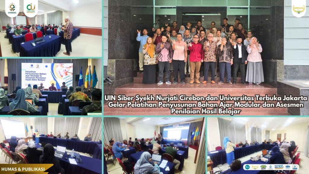 UIN Siber Cirebon (Jakarta) – Universitas Islam Negeri (UIN) Siber Syekh Nurjati Cirebon, yang juga dikenal dengan Cyber Islamic University (CIU), berkolaborasi dengan Universitas Terbuka (UT) Jakarta, sukses menyelenggarakan Pelatihan Penyusunan Bahan Ajar Modular dan Pelatihan Asesmen Penilaian Hasil Belajar (Bank Soal). Kegiatan ini berlangsung selama tiga hari, 28–30 Agustus 2025, dan diikuti oleh 30 dosen UIN Siber Syekh Nurjati Cirebon.