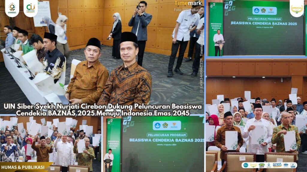 UIN Siber Cirebon (Jakarta) – Universitas Islam Negeri (UIN) Siber Syekh Nurjati Cirebon, yang juga dikenal dengan Cyber Islamic University (CIU), kembali menunjukkan komitmennya dalam mendukung upaya strategis menyiapkan generasi unggul yang mampu menghadapi tantangan global menuju Indonesia Emas 2045. Hal ini ditandai dengan kehadiran Rektor UIN Siber Syekh Nurjati Cirebon, Prof. Dr. H. Aan Jaelani, M.Ag., didampingi Wakil Rektor III Bidang Kemahasiswaan dan Kerja Sama, Prof. Dr. Hajam, M.Ag., sebagai peserta undangan pada Peluncuran Program Beasiswa Cendekia BAZNAS (BCB) 2025, yang berlangsung Senin (4/8/2025) di Graha Utama Kemendikdasmen, Gedung A Kemendikbud, Jakarta.