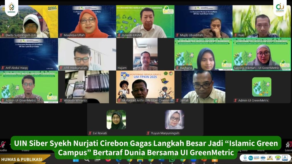 UIN Siber Cirebon – Universitas Islam Negeri (UIN) Siber Syekh Nurjati Cirebon, yang dikenal secara internasional sebagai Cyber Islamic University (CIU), kembali menunjukkan komitmen kuatnya sebagai pelopor kampus digital Islam yang berwawasan lingkungan. Melalui pertemuan perdana secara daring via Zoom Cloud Meeting bersama tim UI GreenMetric, UIN Siber Syekh Nurjati Cirebon memulai langkah strategis untuk mewujudkan cita-cita besar sebagai Islamic Green Campus kelas dunia. Rabu, (14/5).