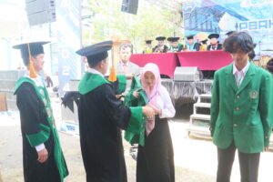 Selain membuka acara secara resmi, Rektor UIN Siber Syekh Nurjati Cirebon Prof. Dr. H. Aan Jaelani, M.Ag., didampingi oleh Wakil Rektor III Bidang Kemahasiswaan dan Kerjasama, Prof. Dr. Hajam, M.Ag., serta Ketua SEMA dan DEMA, melakukan prosesi simbolis pengenaan jaket almamater kepada dua orang calon mahasiswa baru. Momen ini menjadi penanda resmi bahwa para mahasiswa baru telah menjadi bagian dari keluarga besar UIN Siber Syekh Nurjati Cirebon.