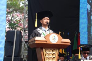 Rektor UIN Siber Syekh Nurjati Cirebon, Prof. Dr. H. Aan Jaelani, M.Ag., menyampaikan sambutan penuh semangat kepada mahasiswa baru.