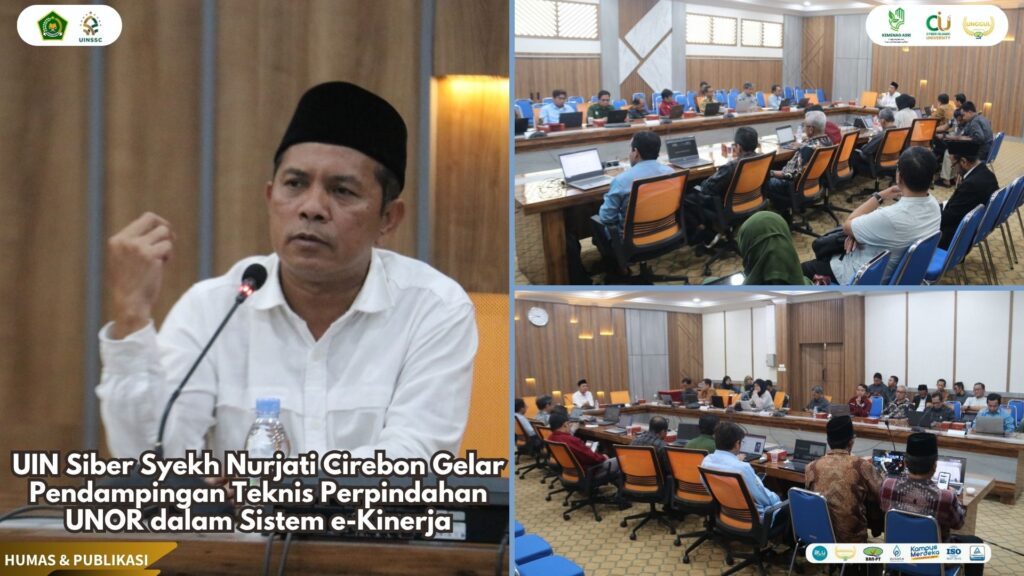 UIN Siber Cirebon — Dalam rangka memastikan kelancaran proses penyesuaian dan pemutakhiran Unit Organisasi (UNOR) pada aplikasi e-Kinerja, akibat adanya perubahan struktur organisasi dan perpindahan pegawai, Layanan Kepegawaian Biro Administrasi, Keuangan, dan Umum (AKU) UIN Siber Syekh Nurjati Cirebon menggelar kegiatan Pendampingan Teknis Perpindahan UNOR dalam Sistem e-Kinerja, Kamis (16/10/2025).