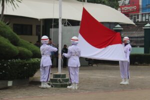Dalam suasana yang penuh semangat, para peserta upacara mengikuti seluruh rangkaian kegiatan dengan khidmat — mulai dari pengibaran bendera Merah Putih, pembacaan teks Sumpah Pemuda, hingga doa penutup yang meneguhkan nilai kebangsaan dan semangat gotong royong.