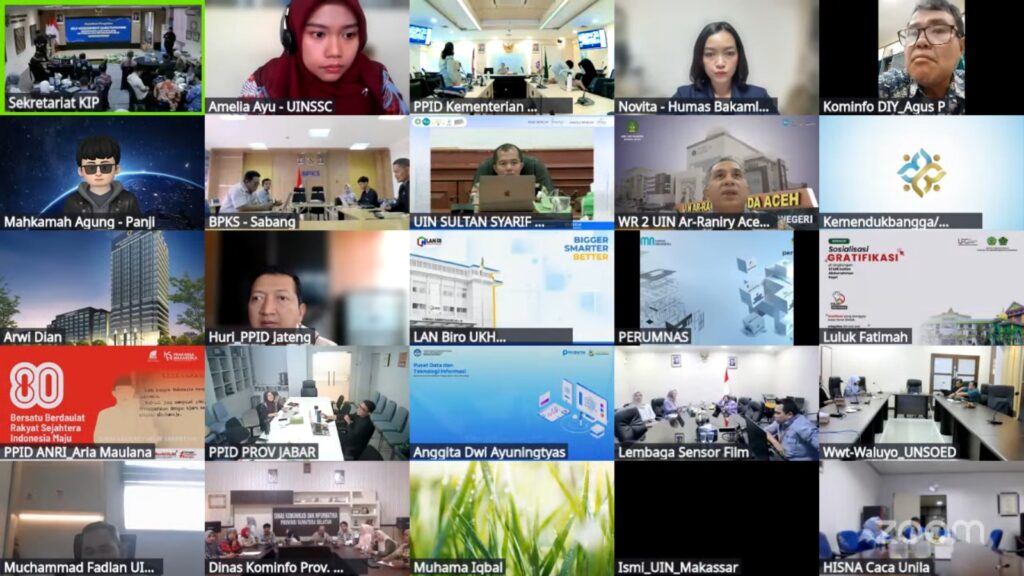 Dalam kegiatan tersebut, KI Pusat mengundang 338 badan publik baik secara daring maupun luring, terdiri atas 48 kementerian, 46 LPNK, 35 LNS, 38 pemerintah provinsi, 63 BUMN, 150 PTN, dan 8 partai politik.