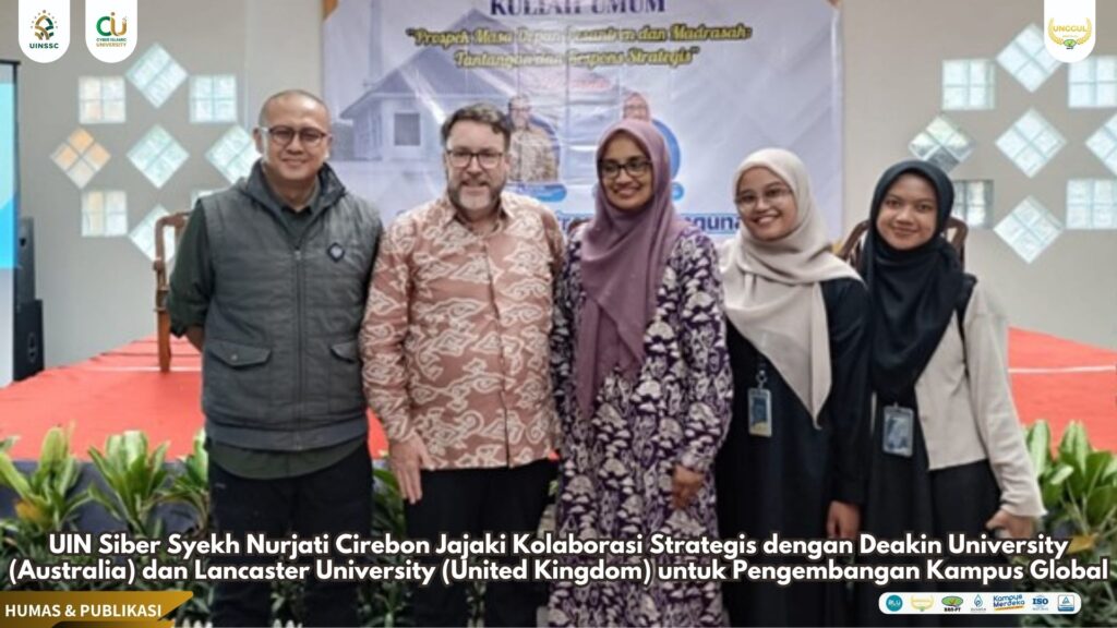 UIN Siber Cirebon – Universitas Islam Negeri (UIN) Siber Syekh Nurjati Cirebon mengambil langkah penting dalam memperluas jaringan internasional melalui rencana kolaborasi jangka panjang dengan dua institusi pendidikan ternama dunia, yaitu Deakin University (Australia) dan Lancaster University (United Kingdom). Kesepakatan awal tercapai secara informal usai pelaksanaan Kuliah Umum yang disampaikan oleh Prof. Greg Barton, Rektor Deakin-Lancaster University Indonesia, serta didampingi oleh Citta Sellepan, MBA., Rector Advisor for Deakin-Lancaster University Indonesia yang berlokasi di Bandung. (26/05).