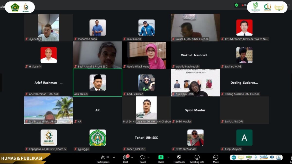 UIN Siber Cirebon — Universitas Islam Negeri (UIN) Siber Syekh Nurjati Cirebon menggelar Rapat Penyiapan Dokumen Evaluasi Program Prioritas (Asta Protas) Kementerian Agama Republik Indonesia secara daring pada Minggu, 14 Desember 2025. Rapat ini menjadi langkah strategis kampus dalam memastikan kesiapan dokumen, sinkronisasi program, serta penguatan implementasi kebijakan prioritas Kementerian Agama di lingkungan UIN Siber Syekh Nurjati Cirebon.