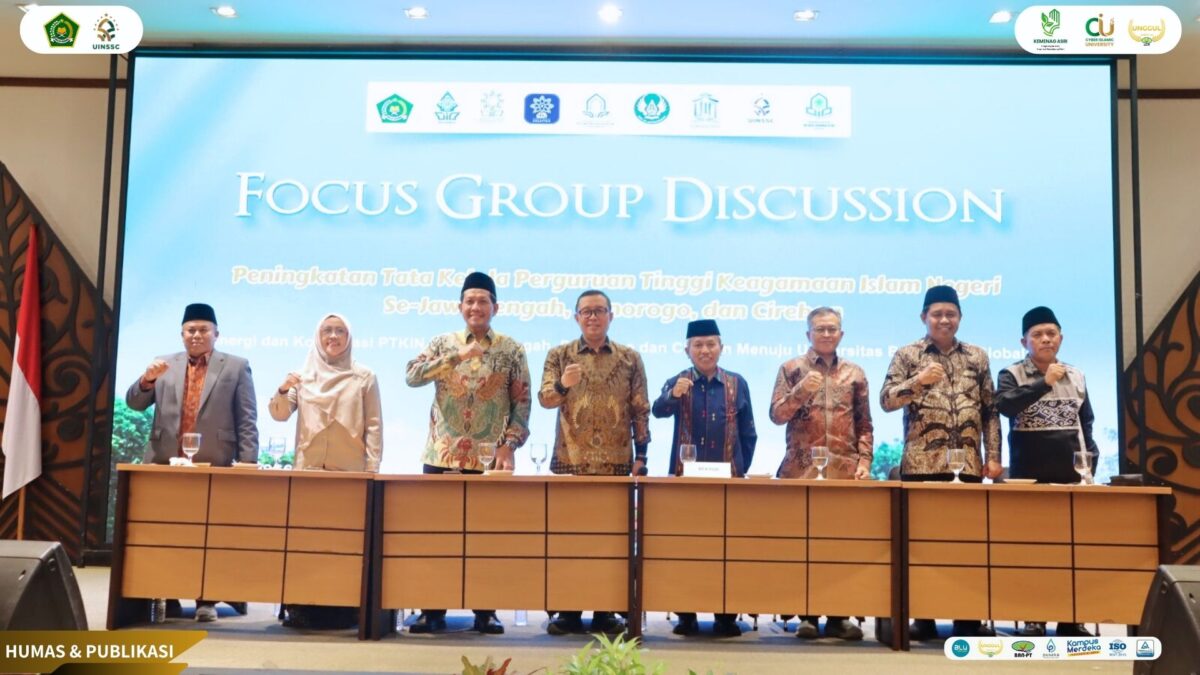 FGD yang mengusung tema “Sinergi dan Kolaborasi PTKIN se Jawa Tengah, Ponorogo, dan Cirebon Menuju Universitas Bereputasi Global” ini menjadi forum penting dalam memperkuat tata kelola kelembagaan, meningkatkan daya saing institusi, serta memperluas jejaring kolaborasi antar-PTKIN di tingkat nasional dan internasional.