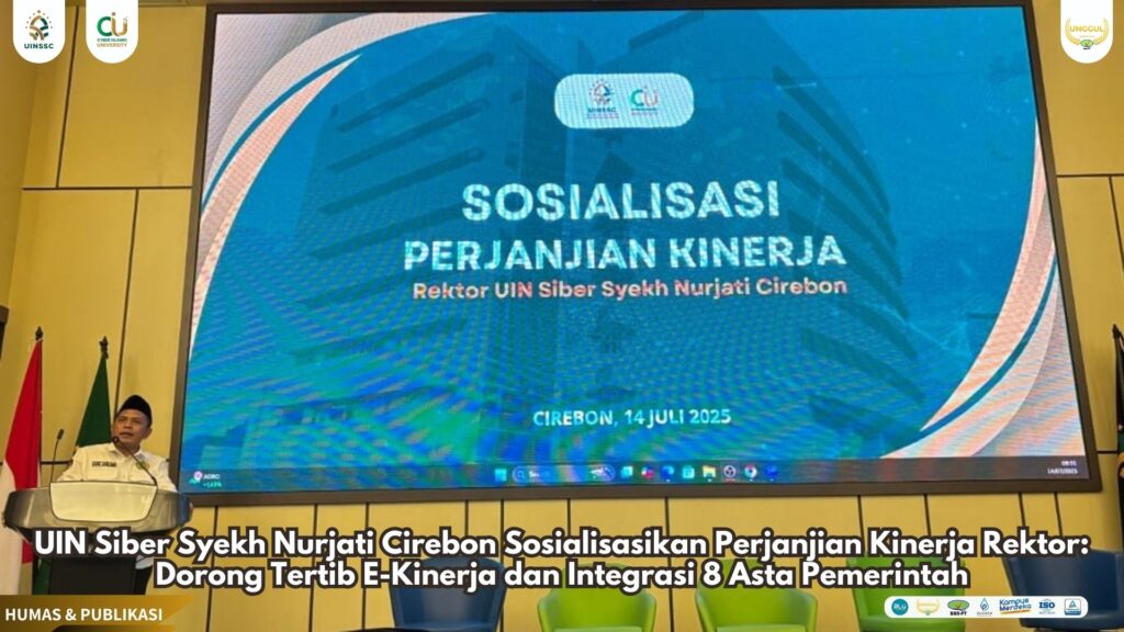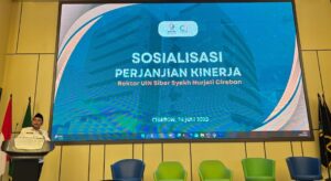 UIN Siber Cirebon — Dalam rangka memperkuat budaya kinerja yang terukur, akuntabel, dan terintegrasi dengan sistem nasional, Rektor Universitas Islam Negeri (UIN) Siber Syekh Nurjati Cirebon, Prof. Dr. H. Aan Jaelani, M.Ag., menggelar Sosialisasi Perjanjian Kinerja (Perkin) Rektor pada Senin, 14 Juli 2025, bertempat di Gedung Siber SBSN lantai 8.