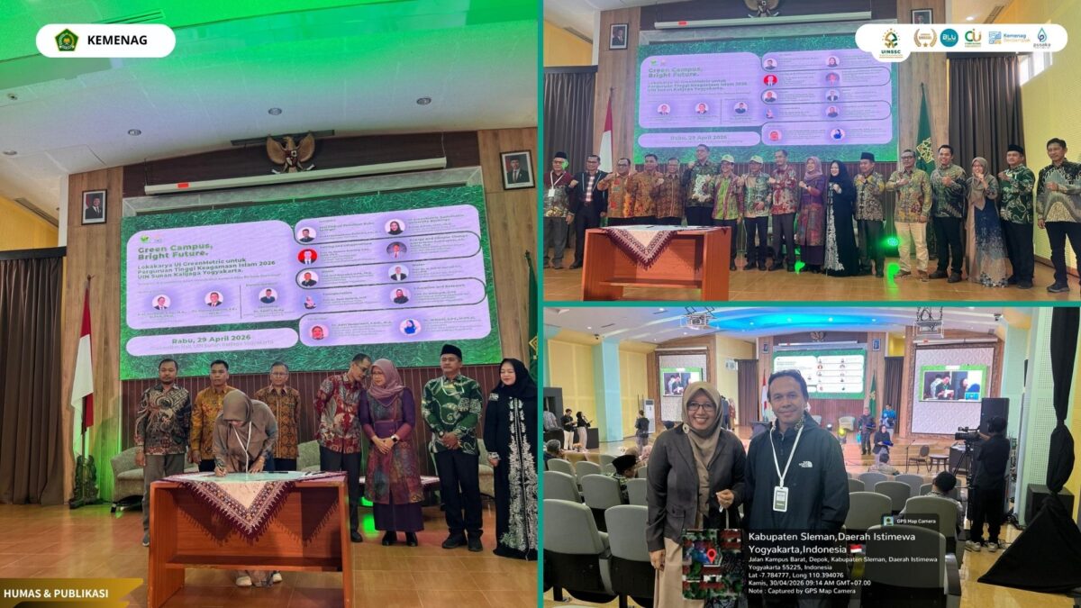 UIN Siber Cirebon (Yogyakart) – UIN Siber Syekh Nurjati Cirebon tidak hanya hadir sebagai peserta dalam Lokakarya UI GreenMetric 2026, tetapi juga mengambil peran strategis melalui penandatanganan komitmen bersama pimpinan Perguruan Tinggi Keagamaan Islam (PTKI) yang digelar di UIN Sunan Kalijaga Yogyakarta pada 29 April 2026.