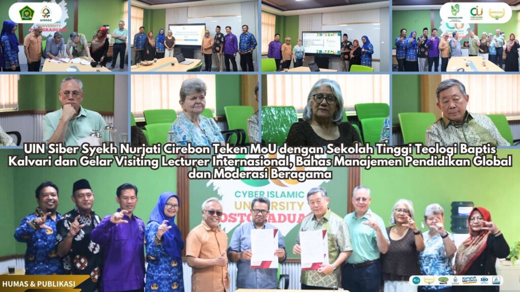 UIN Siber Syekh Nurjati Cirebon – Program Pascasarjana UIN Siber Syekh Nurjati Cirebon – Prodi S2 MPI, menggelar kegiatan Visiting Lecturer Internasional bertema “Global-Oriented Education Management and Religious Moderation in the Digital Era”. Kegiatan ini sekaligus menjadi momentum penting dengan dilakukannya penandatanganan nota kesepahaman (MoU) antara UIN Siber Syekh Nurjati Cirebon dan Sekolah Tinggi Teologi Baptis Kalvari, dihadiri langsung oleh COO Yayasan Kalvari, yang berasal dari Texas Amerika Serikat, menandai langkah besar dalam kolaborasi akademik global. (01/10).