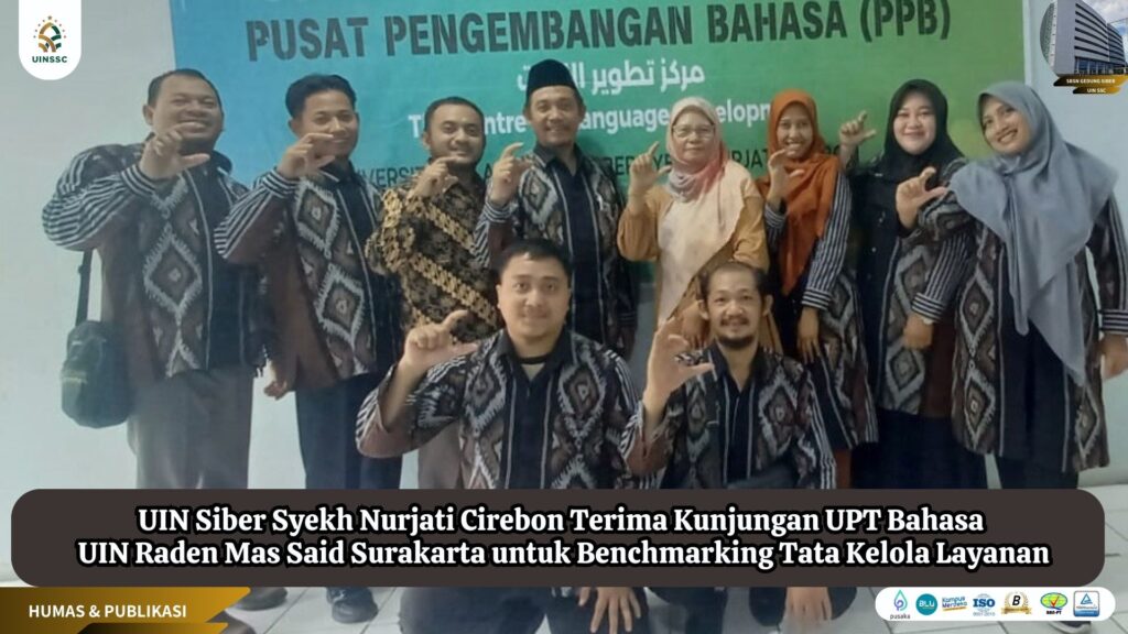 UIN Siber Cirebon – Pusat Pengembangan Bahasa Universitas Islam Negeri (UIN) Siber Syekh Nurjati Cirebon, yang dikenal sebagai Cyber Islamic University (CIU), menerima kunjungan dari Unit Pelaksana Teknis (UPT) Bahasa UIN Raden Mas Said Surakarta pada 24 Oktober 2024. Kunjungan ini bertujuan untuk melakukan benchmarking dalam tata kelola layanan bahasa, dengan fokus pada berbagi pengetahuan, pengalaman, dan praktik terbaik dalam pengembangan layanan bahasa di lingkungan perguruan tinggi Islam.