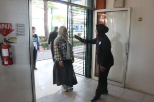 Lebih lanjut, Dewi memaparkan secara rinci prosedur standar operasional peserta saat berada di lokasi ujian. Dimulai dari pengecekan suhu tubuh, registrasi di meja panitia, menunggu di ruang karantina, lalu diarahkan menuju ruang CBT untuk mengikuti ujian. Setelah menyelesaikan ujian, peserta kembali ke ruang karantina untuk mengambil barang-barang pribadi yang sebelumnya tidak diperkenankan dibawa masuk ke ruang CBT.