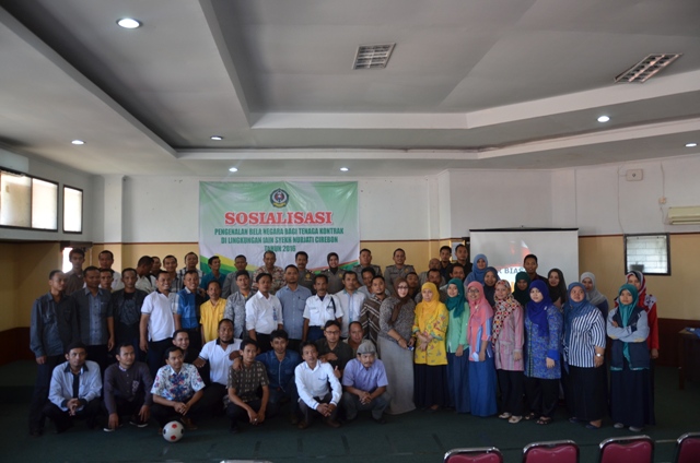 Sabtu, 16 April 2016 Kepala Biro AUAK IAIN Syekh Nurjati Cirebon Drs. H. Akso, M. Pd melalui Kepala Bagian Umum dan Humas Drs. Imron Rosyadi, MM beserta Kasubbag Humas dan Publikasi Mohamad Arifin, M. Pd.I melaksanakan kegiatan Up Grading Tenaga Kontrak di Lingkungan IAIN Syekh Nurjati Cirebon, mulai pukul 07.00 s.d 17.30 WIB di gedung Rektorat lt.3 dengan dihadiri peserta sebanyak 68 orang tenaga kontrak. Tujuan dari kegiatan ini adalah sebagai salah satu bentuk upaya peningkatan mutu lembaga dalam hal pelayanan terhadap pengguna jasa khususnya Mahasiswa melalui tenaga kontrak, dalam kegiatan kali ini tenaga kontrak diberikan materi seputar kehumasan, keprotokoleran, pelayanan terhadap pengguna jasa serta loyalitas terhadap lembaga dan pimpinan dan sedikit pengenalan materi Bela Negara. Narasumber pada kegiatan kali ini dari institusi Kepolisian unit Binmas yang diwakili oleh Kasat Binmas (AKP. Ali Mashar, SH), Kanit Bin Tibmas (AIPTU. M. Sukrim), BRIPKA. Dewi Mery (Moderator) beserta jajaran Binmas POLRES Cirebon Kota.