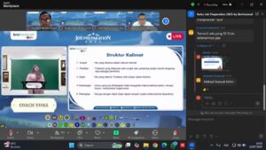 Pada pertemuan kedua, yang digelar pada Kamis (10/07), hadir Coach Yona Tirta Sari, S.Pd., yang membawakan materi tentang Tes Wawasan Kebangsaan (TWK). Fokus utama pembahasan adalah penggunaan kalimat baku dalam Bahasa Indonesia, yang menjadi aspek penting dalam membentuk komunikasi formal dan profesional, terutama dalam konteks seleksi CPNS, PPPK, BUMN, maupun instansi swasta.