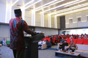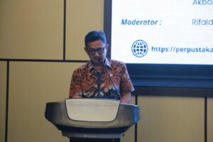 Kepala UPT Pusat Perpustakaan, Syibli Maufur, M.Pd., dalam sambutannya menegaskan bahwa diskusi budaya merupakan program unggulan dan rutin yang digagas perpustakaan.