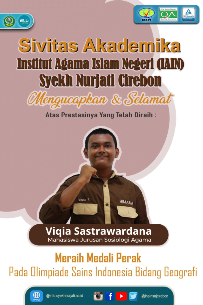 Viqia Sastrawardana Mahasiswa Jurusan Sosiologi Agama Fakultas Dakwah dan Komunikasi Islam (FDKI) IAIN Syekh Nurjati Cirebon, berhasil merebut piala perak pada kejuaraan Olimpiade Sains Indonesia 0.5 di Semarang. Kejuaraan Olimpiade tersebut diselenggarakan oleh Divya Cahaya Prestasi dengan jumlah peserta 250 mahasiswa, bertarung kuat untuk menampilkan kemampuan terbaiknya.