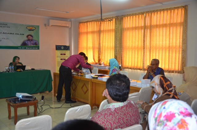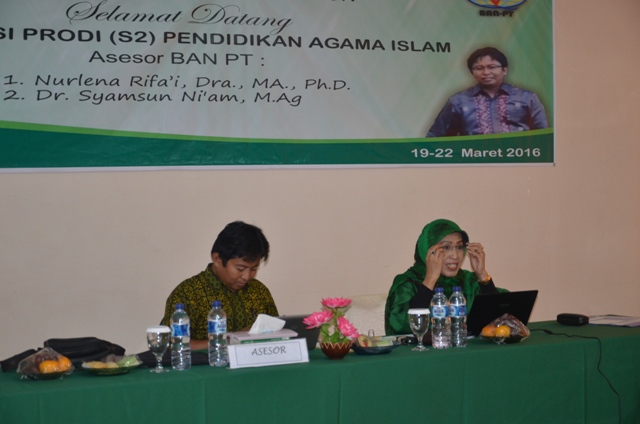 Tim Assesor BAN-PT Nurlena Rifai, Dra., MA., Ph.D dan Syamsun Ni’am, Dr., M. Ag Assesor yang memvisitasi Prodi Pendidikan Agama Islam (PAI) Program Pascasarjana IAIN Syekh Nurjati Cirebon Tahun 2016.