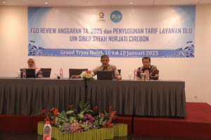 UIN Siber Cirebon – Universitas Islam Negeri (UIN) Siber Syekh Nurjati Cirebon, yang juga dikenal sebagai Cyber Islamic University (CIU), menyelenggarakan kegiatan Focus Group Discussion (FGD) bertema Review Anggaran Tahun Anggaran 2025 dan Penyusunan Tarif Layanan Badan Layanan Umum (BLU). Acara berlangsung selama tiga hari, mulai Kamis hingga Sabtu, 16-18 Januari 2025, bertempat di Grand Tryas Hotel, Cirebon.