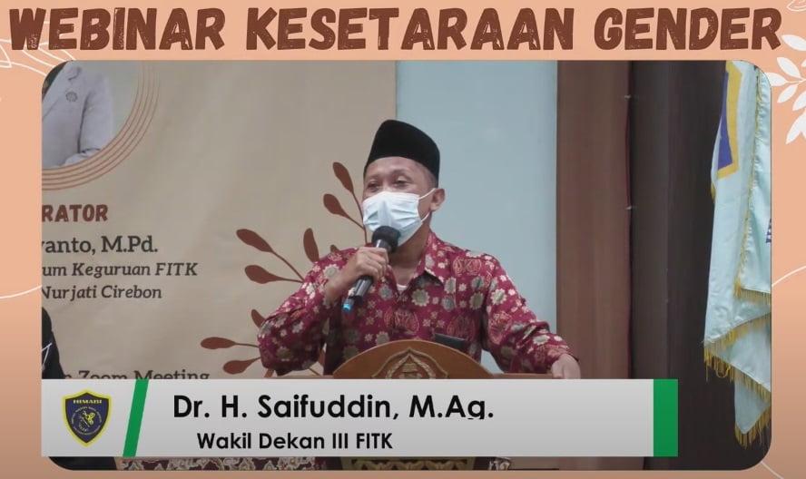 Himpunan Mahasiswa Bahasa Indonesia (HIMABI) Institut Agama Islam Negeri (IAIN) Syekh Nurjati Cirebon menggelar Webinar Kesetaraan Gender dengan tema “Kesetaraan Gender dalam Perspektif Agama Islam” bertempat di aula gedung Fakultas Ilmu Tarbiyah dan Keguruan (FITK) lantai 5 dan melalui zoom meeting secara online. Kegiatan tersebut dihadiri oleh Dr. H. Saifuddin, M.Ag (Wakil Dekan III FITK) dan didampingi Dra. Tati Sri Uswati, M.Pd (Kajur Bhs. Indonesia). Kegiatan tersebut menghadirkan 2 (dua) pemateri yaitu : Dr. Wardah Nuroniyah, S.H.I., M.S.I., (Dosen Fakultas Syariah dan Hukum UIN Jakarta), Wakit Hasim, M.Hum (Tim Ahli PSGA IAIN Cirebon) dan selaku moderator Dr. Tato Nuryanto, M.Pd. Kegiatan disiarkan secara online melalui zoom meeting dan canal youtube (himabi_iainsnj). Rabu, 09/02/2022