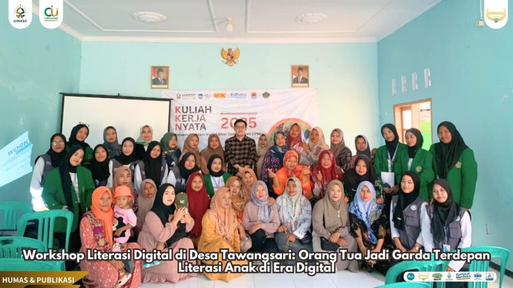 UIN Siber Cirebon (Tawangsari) – Di tengah derasnya arus informasi dan maraknya penggunaan gawai oleh anak-anak, peran orang tua sebagai pembimbing literasi digital menjadi semakin krusial. Melihat urgensi tersebut, mahasiswa Kuliah Kerja Nyata (KKN) Kelompok 10 UIN Siber Syekh Nurjati Cirebon menggelar Workshop Literasi Digital bertema “Peran Orang Tua dalam Membangun Literasi Anak di Era Digital”, yang berlangsung di Aula Desa Tawangsari.(15/08).