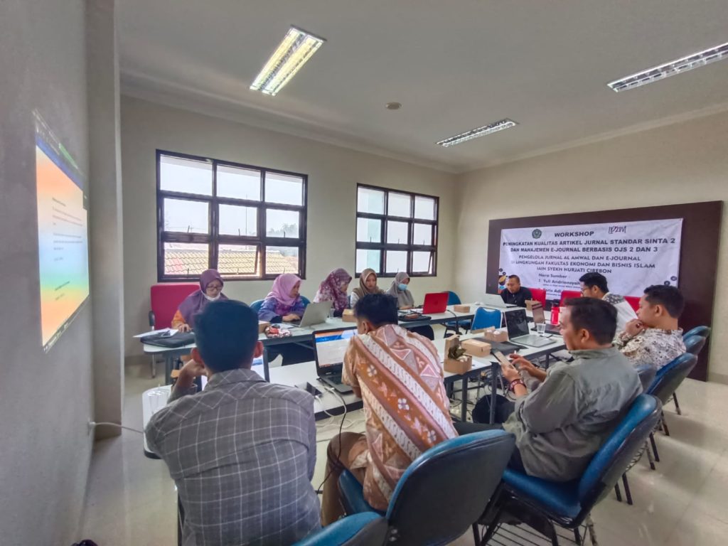 Dengan menghadirkan 2 narasumber workshop yang mengusung tema “Peningkatan Kualitas Artikel Jurnal Standar Sinta 2 dan Manajemen E-Journal Berbasis Open Journal System (OJS) 2 dan 3”. pertama Yuli Andriansyah (Chief Editor Jurnal Milla UII Yogyakarta), kedua Yoris Adi Maretta (Chief Manajer e-journal Unnes Semarang), workshop diselenggarakan selama 2 hari pada Rabu-Kamis, 20-21 September 2023 di gedung SBSN lantai 2 FEBI IAIN Syekh Nurjati Cirebon.