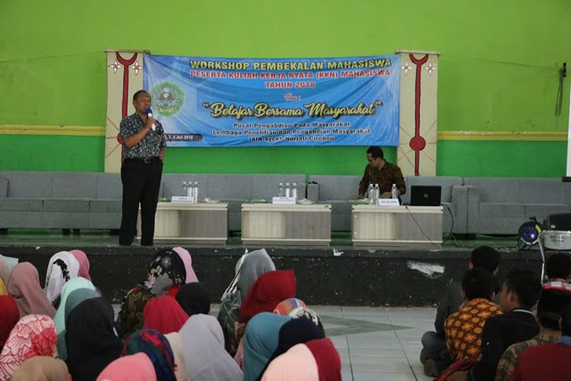 Lembaga Penelitian dan Pengabdian kepada Masyarakat (LPPM) IAIN Syekh Nurjati Cirebon, gelar kegiatan Workshop Pembekalan bagi peserta Kuliah Kerja Nyata (KKN) tahun 2018, dengan tema “ Belajar Bersama Masyarakat”. Di gedung ICC IAIN Syekh Nurjati Cirebon. Senin, (02/07/2018).
