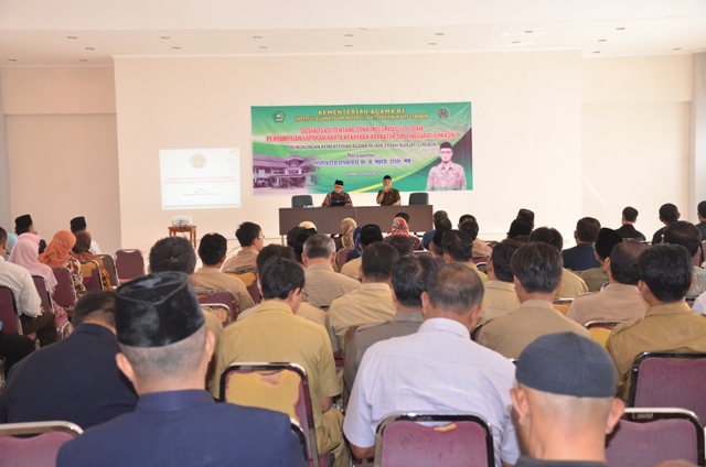 Kamis, 25 Juni 2015 Inspektorat Jenderal Kementerian Agama RI Dr. H. Moch. Jasin, MM “Sosialisasi tentang Zona Integritas (ZI) dan Penyampaian Laporan Harta Kekayaan Aparatur Sipil Negara (LHKASN). Menghadirkan peserta dari Kandepag, Kanwil, Pengadilan Agama, dan IAIN Syekh Nurjati Cirebon di Gedung Pascasarjana lt. 3.